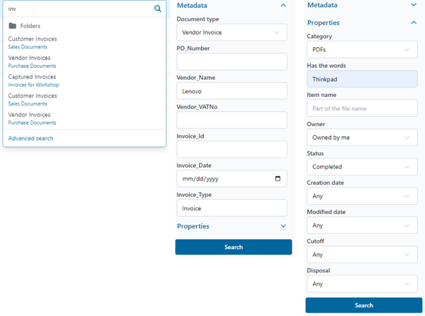 - carpeta y espacio búsqueda de metadatos con opciones de filtrado de texto
