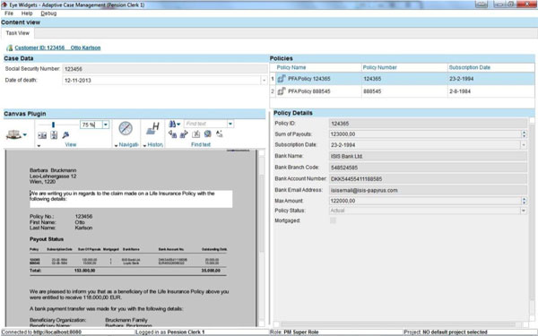 - Papyrus WebRepository on a central server provides the management infrastructure for user and document security, manages versioning of resources and applications, change management and central resource collection. User applications are developed with the Papyrus EYE GUI. Built-in portal delivers applications to internal named users. Proxy replication offers offline laptop users (insurance agents) the same infrastructure in a local library.